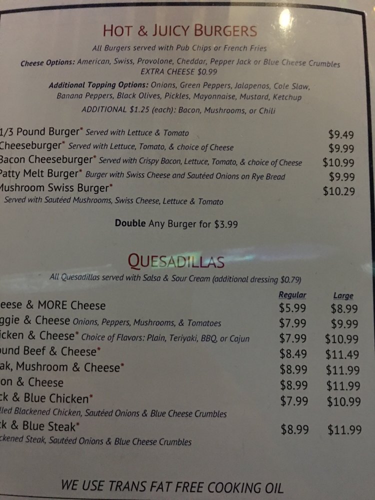 REGUALR SIZE ( SLICES) OF CHOPPED STEAK, MUSHROOMS AND CHEESE QUESADILLA. SERVED WITH CHOICE OF DRESSING.